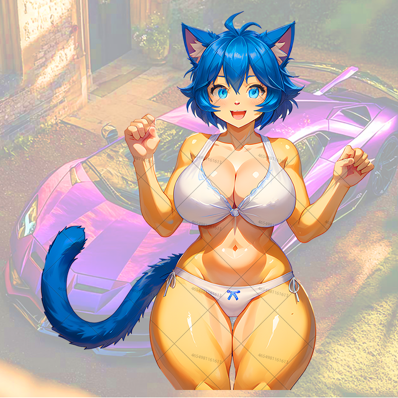 Item Name: Blue Haired Anime Catgirl Bikini Sticker