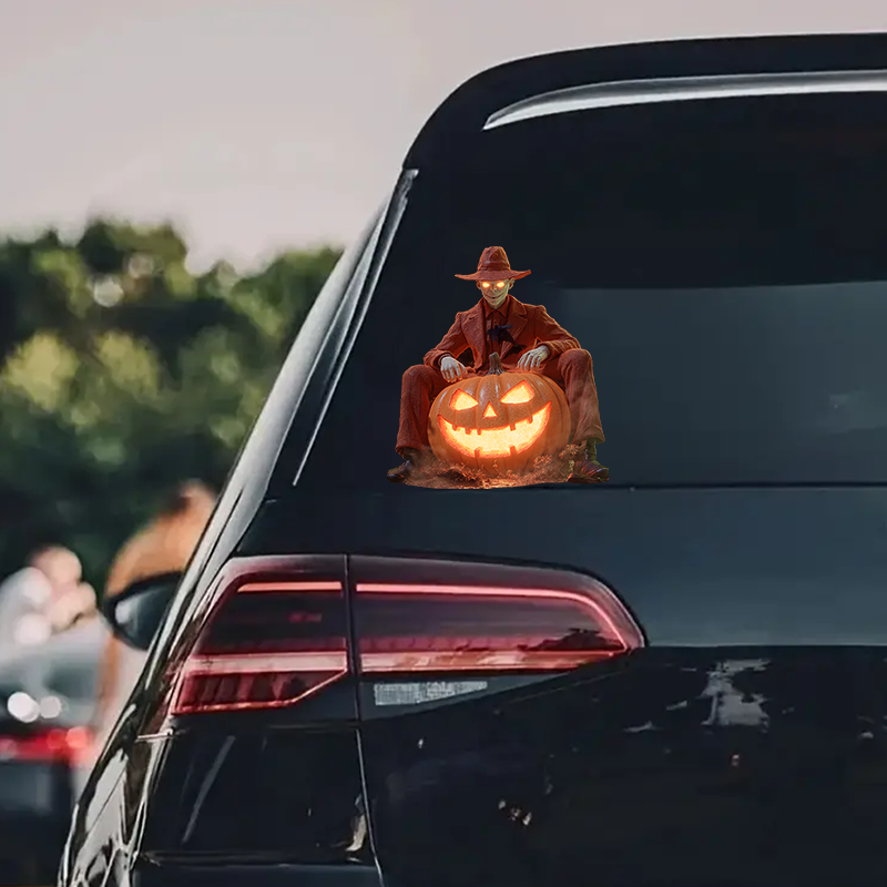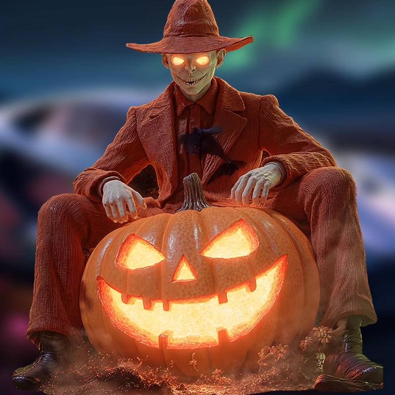 Halloween Man on Pumpkin Statue, vibrant colors perfect for art projects, collages, and crafts.