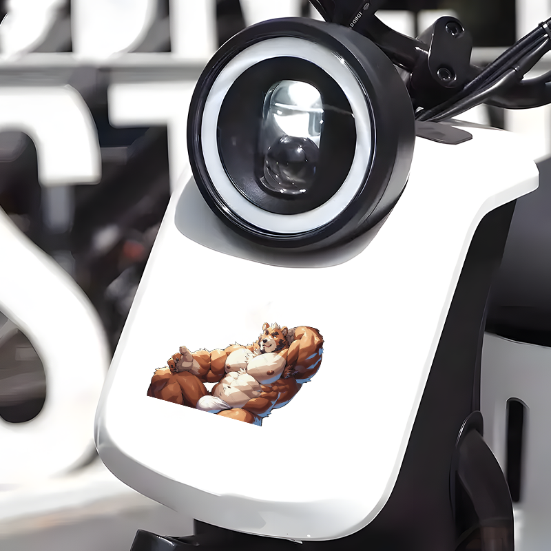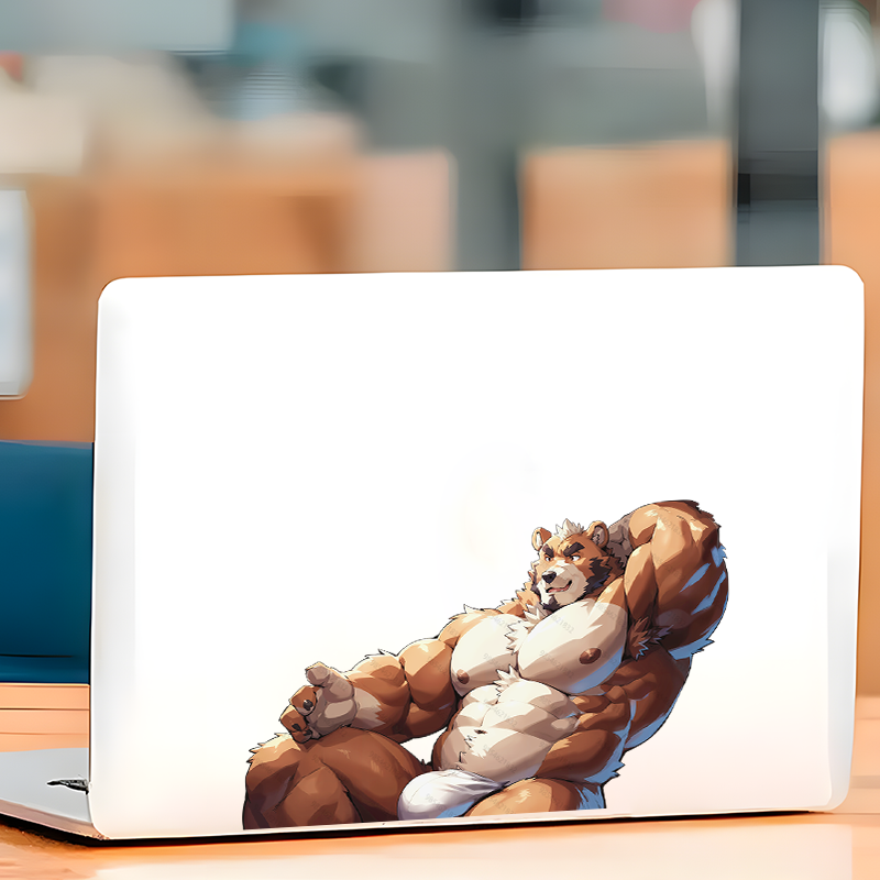Muscular Bear Reclining Car Sticker Decal, ideal for motivational boards, vision boards, and wall art. Vinyl car decals suitable for cars, motorcycles, laptops, computers, backpacks, water bottles, and more.