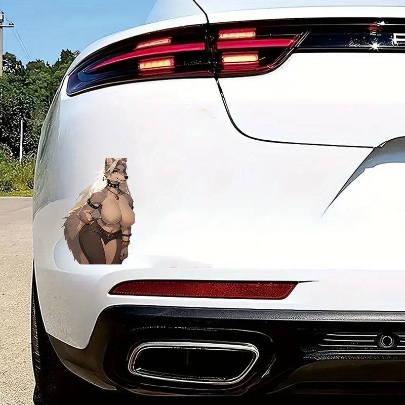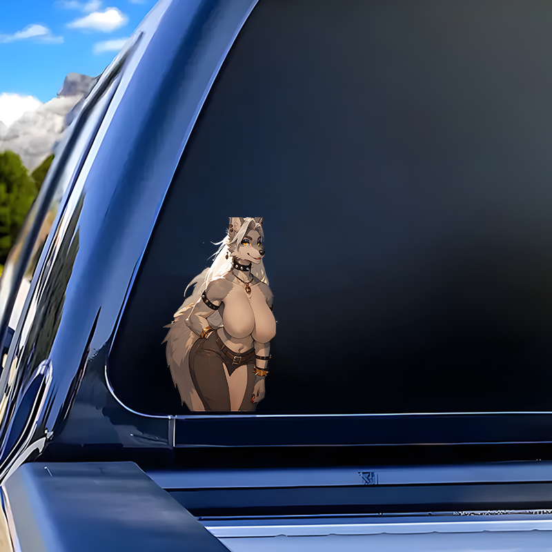 Item Name: Anthro Wolf Girl with Purple Car Sticker Decal