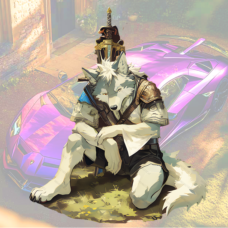 Item Name: Armored Wolf Warrior with Sword and Car Sticker