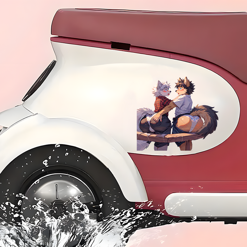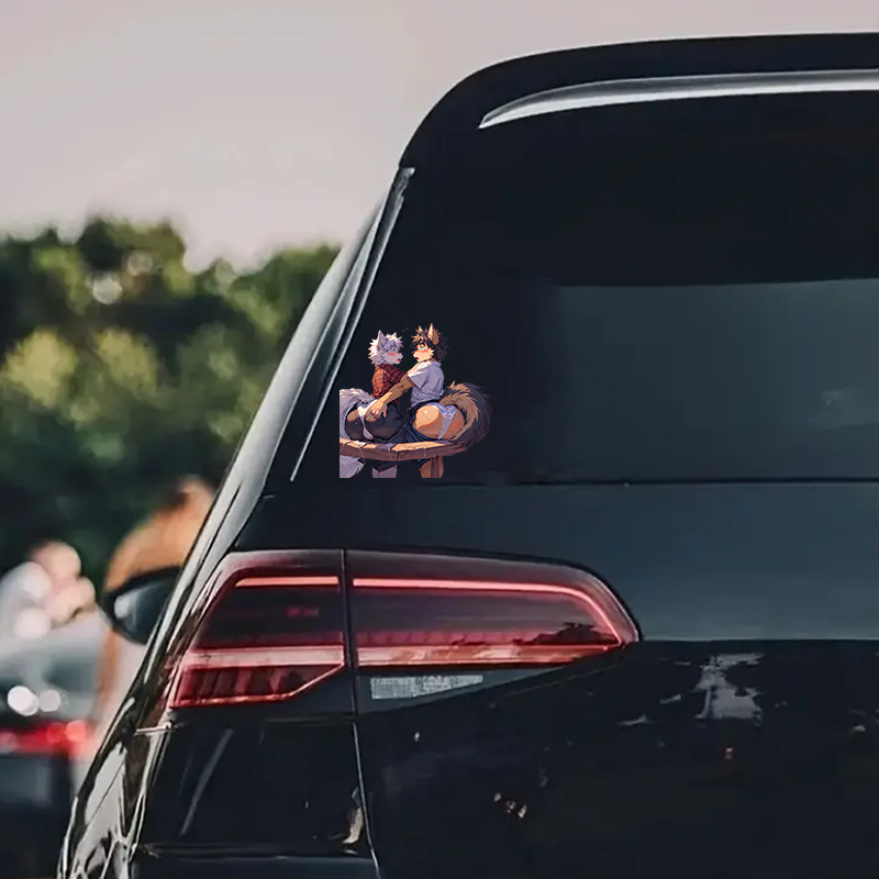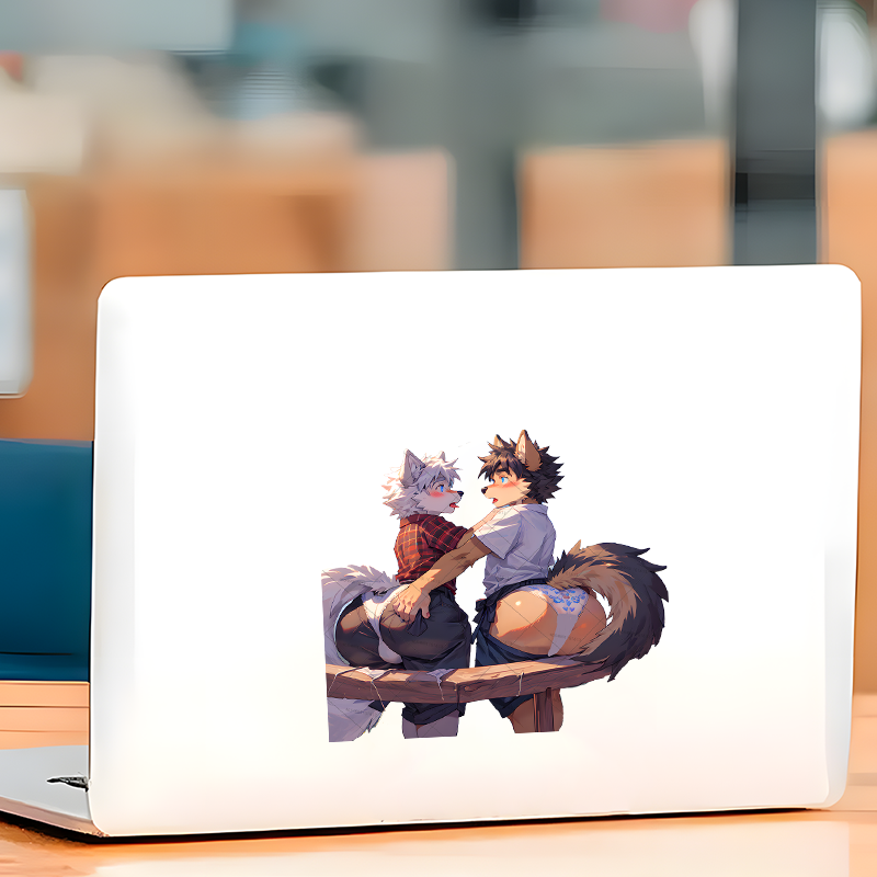 Furry Wolves Flirting Sticker, stylish addition to your iPad, Kindle, e-reader, and tablet cases. Vinyl car decals suitable for cars, motorcycles, laptops, computers, backpacks, water bottles, and more.