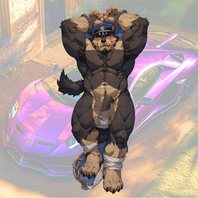 Item Name: Handcuffed Furry Cop Sticker with Lamborghini Background