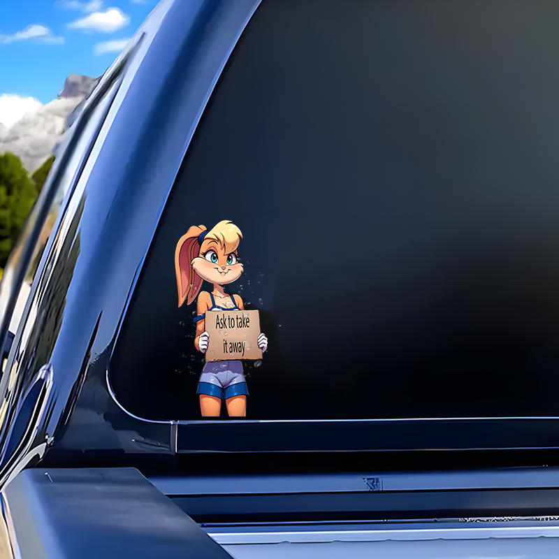 Lola Bunny Ask to Take It Away Car Sticker, high-quality vinyl for personalized decoration of laptops and water bottles. Vinyl car decals suitable for cars, motorcycles, laptops, computers, backpacks, water bottles, and more.