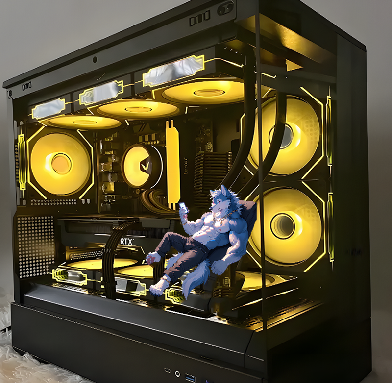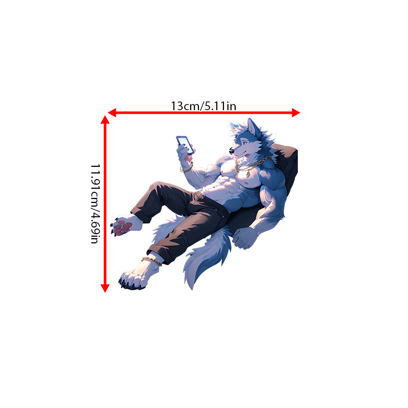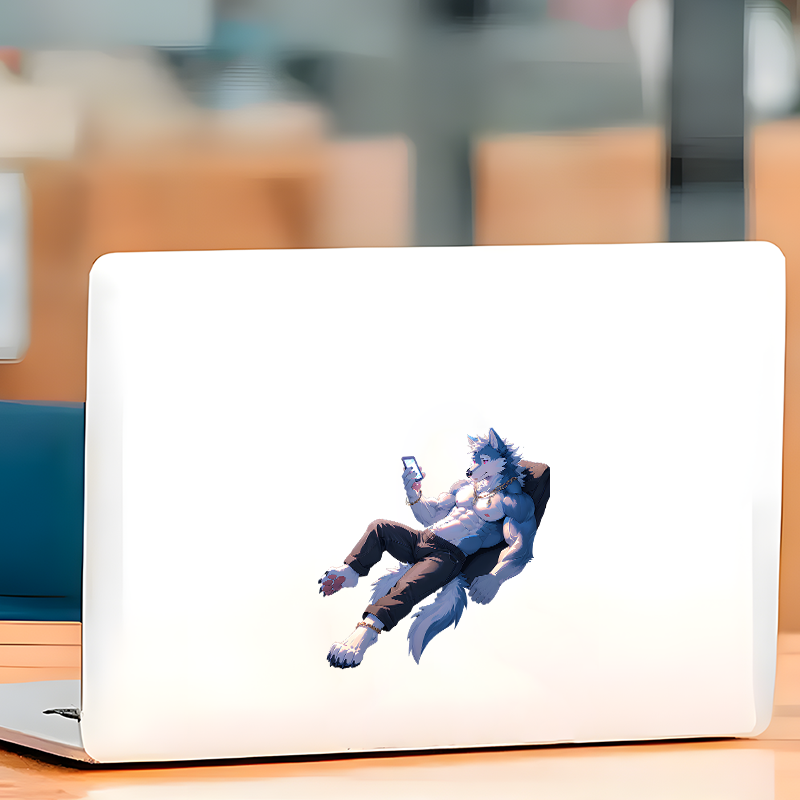 Item Name: Muscular Furry Wolf Relaxing With Phone Sticker