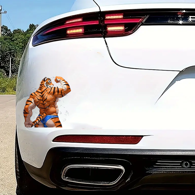 Muscular Tiger Furry Sticker/Decal, great for adding a pop of color to your fridge or freezer. Vinyl car decals suitable for cars, motorcycles, laptops, computers, backpacks, water bottles, and more.