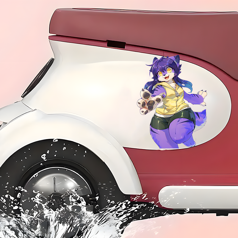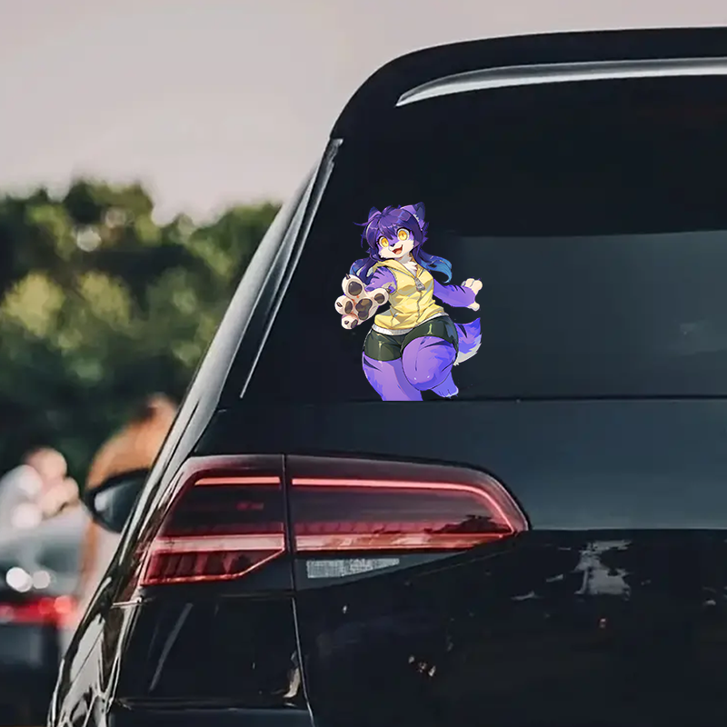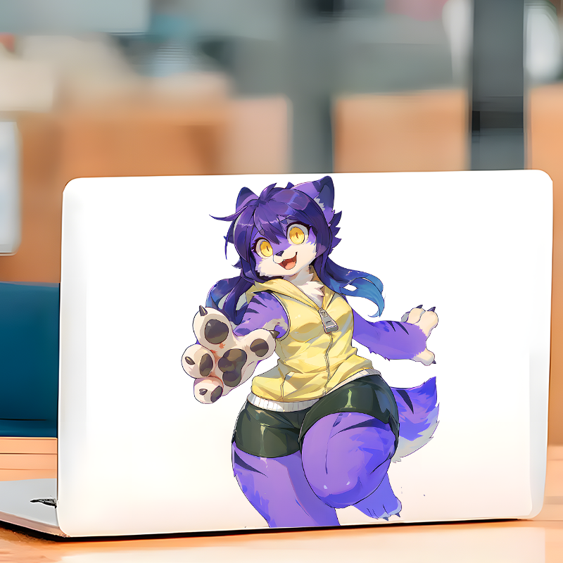 Purple Furry Character with Yellow Hoodie, ideal for personalizing your workspace, desk, monitor, and keyboard.