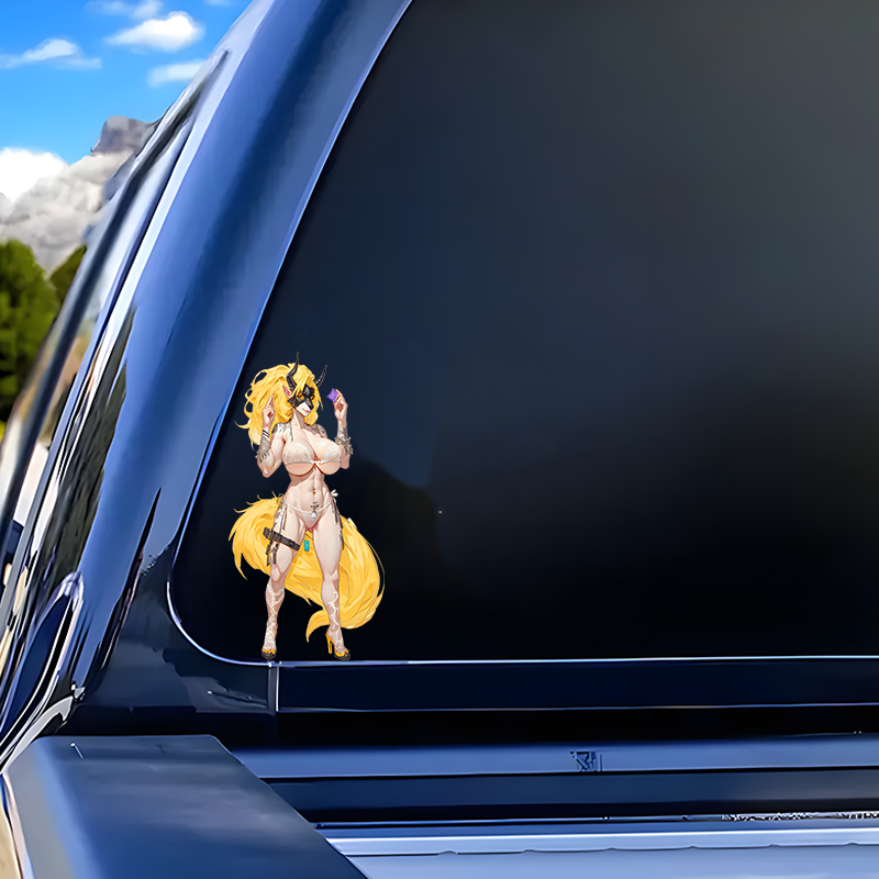 Sexy Furry Bikini Girl with Condom and Lamborghini Sticker, adheres well to plastic, metal, wood, glass, and ceramic surfaces. Vinyl car decals suitable for cars, motorcycles, laptops, computers, backpacks, water bottles, and more.