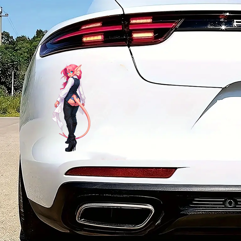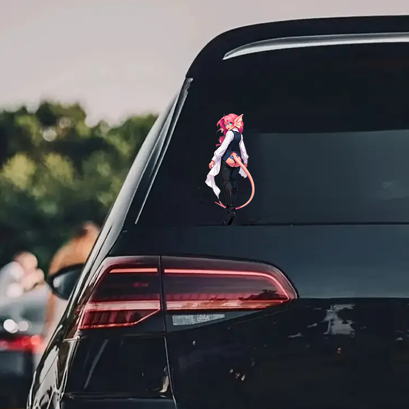 Pink-haired Anime Girl in Vest with Tail, excellent for decorating bedroom doors, lockers, and furniture.